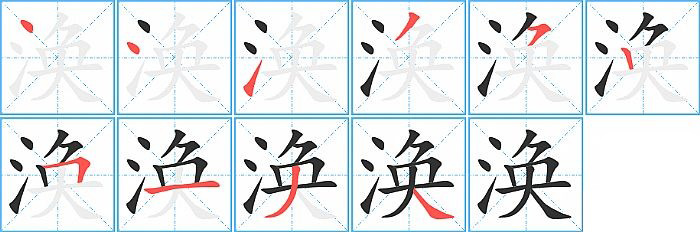 - 问:写"涣"字第10笔是什么笔画?答:捺【