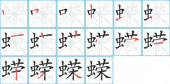 - 问:写"蝾"字第14笔是什么笔画?答:撇【
