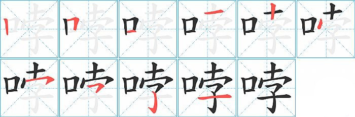 - 问:写"哱"字第10笔是什么笔画?答:横【