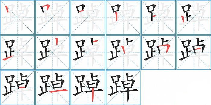 - 问:写"踔"字第14笔是什么笔画?答:横【
