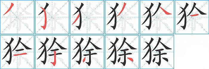 - 问:写"狳"字第10笔是什么笔画?答:点【