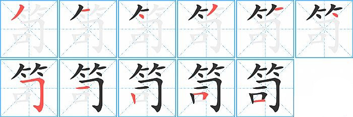 - 问:写"笥"字第9笔是什么笔画?答:竖【