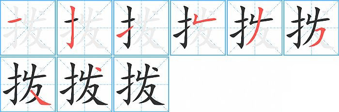 - 问:写"拨"字第7笔是什么笔画?答:捺【