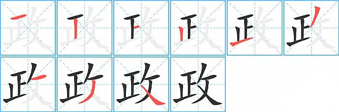 - 问:写"政"字第8笔是什么笔画?答:撇【