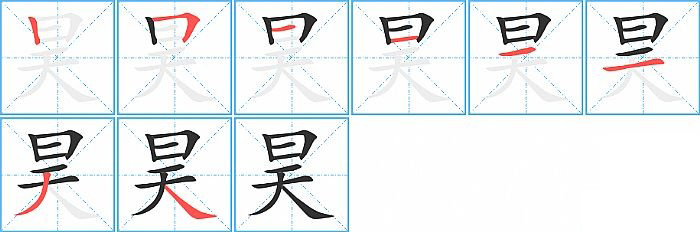 昊的笔画为8画, 笔顺为