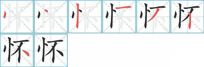 - 问:写"怀"字第5笔是什么笔画?答:撇【
