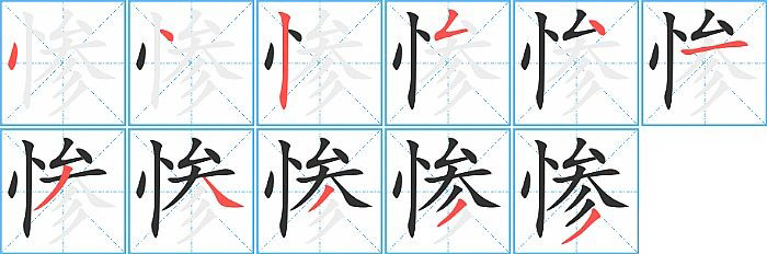 - 问:写"惨"字第10笔是什么笔画?答:撇【