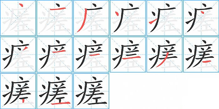 - 问:写"瘥"字第12笔是什么笔画?答:横【