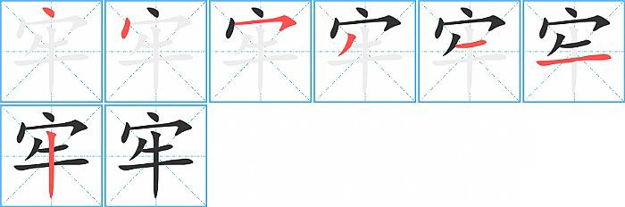 - 问:写"牢"字第7笔是什么笔画?答:竖【