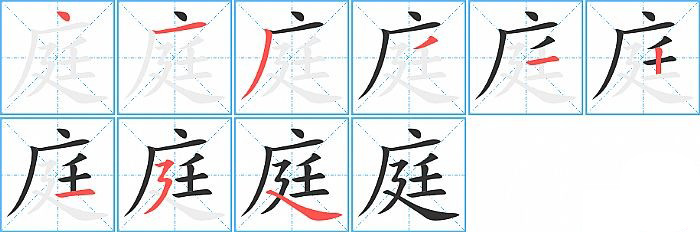 - 问:写"庭"字第7笔是什么笔画?答:横【
