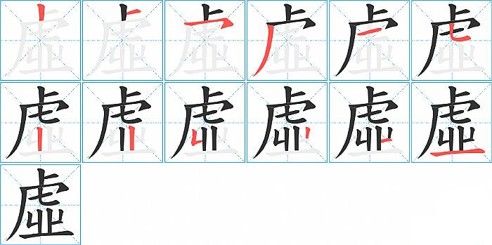 - 问:写"虛"字第12笔是什么笔画?答:横【