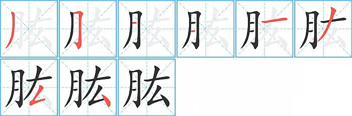 - 问:写"肱"字第6笔是什么笔画?答:撇【