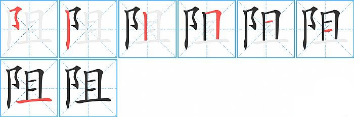 - 问:写"阻"字第7笔是什么笔画?答:横【