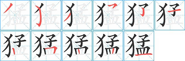 - 问:写"猛"字第10笔是什么笔画?答:竖【