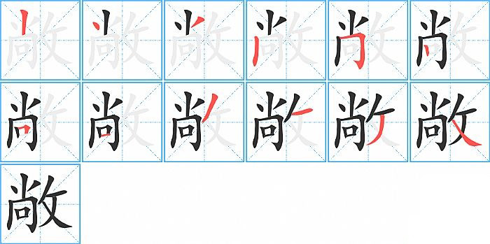 - 问:写"敞"字第11笔是什么笔画?答:撇【