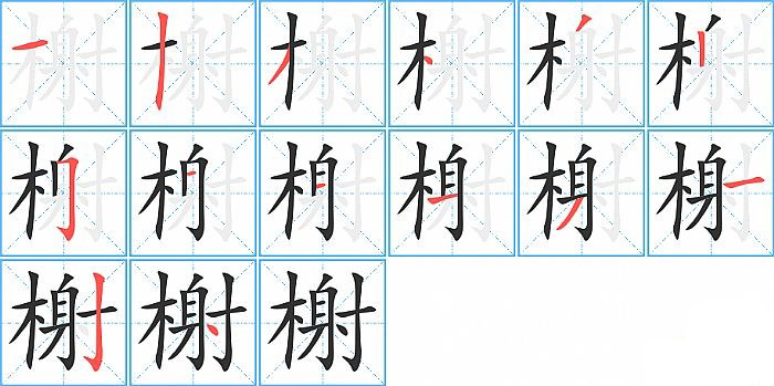 - 问:写"榭"字第12笔是什么笔画?答:横【