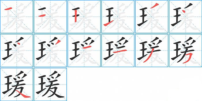 - 问:写"瑗"字第12笔是什么笔画?答:横撇【