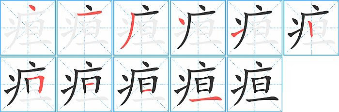 - 问:写"疸"字第10笔是什么笔画?答:横【