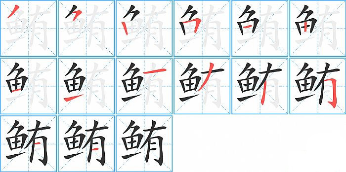 - 问:写"鲔"字第13笔是什么笔画?答:横【