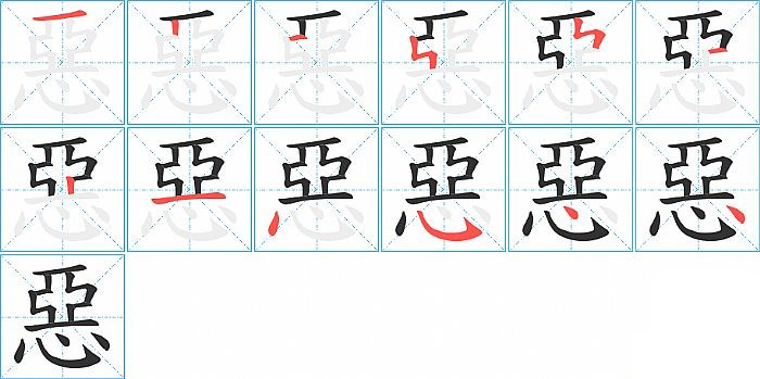 - 问:写"惡"字第10笔是什么笔画?答:斜钩【