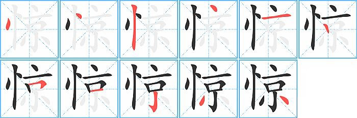- 问:写"惊"字第10笔是什么笔画?答:撇【