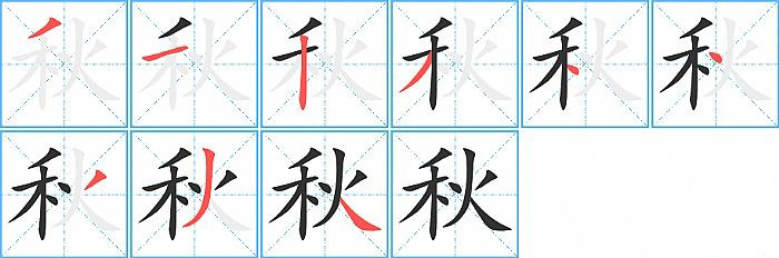 - 问:写"秋"字第8笔是什么笔画?答:撇【