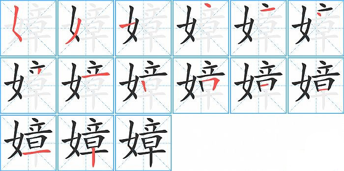 - 问:写"嫜"字第13笔是什么笔画?答:横【