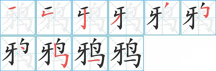 - 问:写"鸦"字第9笔是什么笔画?答:横【