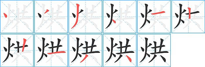 - 问:写"烘"字第9笔是什么笔画?答:撇【