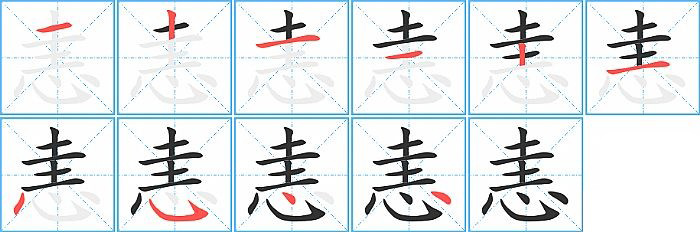 - 问:写"恚"字第4笔是什么笔画?答:横【