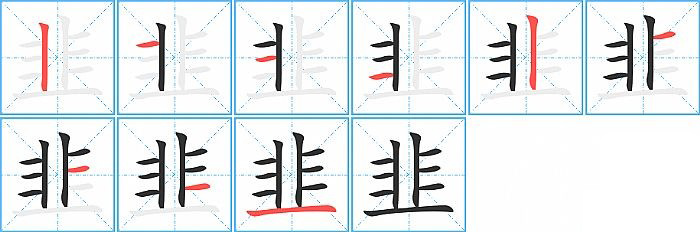 - 问:写"韭"字第8笔是什么笔画?答:横【