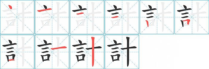 - 问:写"計"字第8笔是什么笔画?答:横【