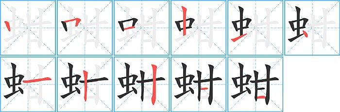 - 问:写"蚶"字第9笔是什么笔画?答:竖【