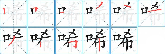 - 问:写"唏"字第4笔是什么笔画?答:撇【