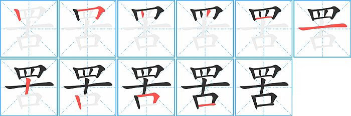 - 问:写"罟"字第10笔是什么笔画?答:横【