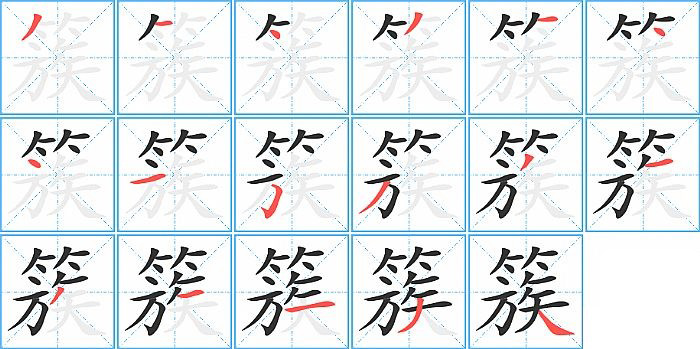 - 问:写"簇"字第16笔是什么笔画?答:撇【