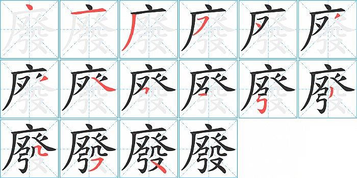 - 问:写"廢"字第12笔是什么笔画?答:撇【
