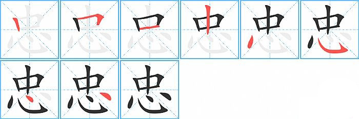 - 问:写"忠"字第1笔是什么笔画?答:竖【