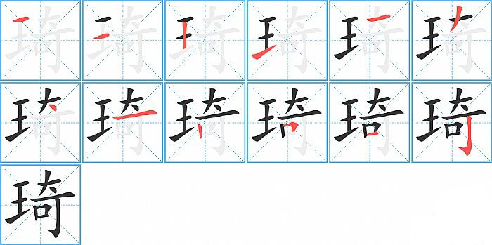 - 问:写"琦"字第12笔是什么笔画?答:竖钩【
