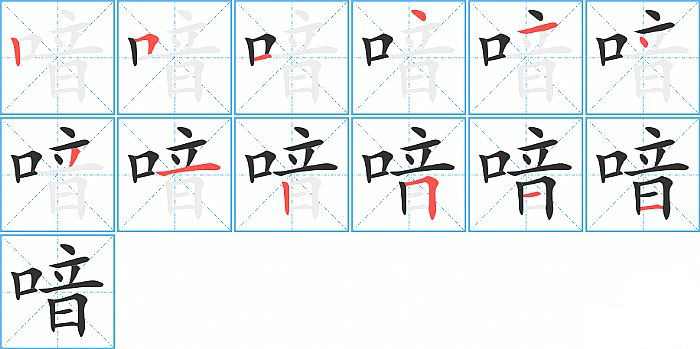 - 问:写"喑"字第12笔是什么笔画?答:横【