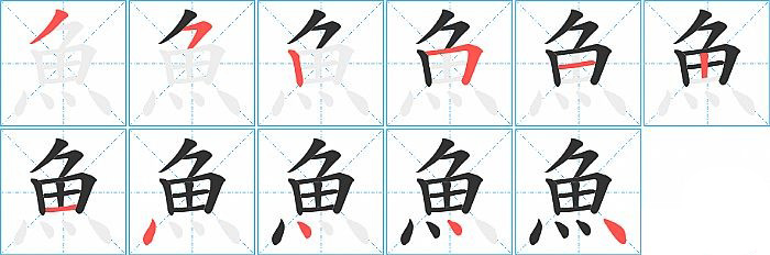 - 问:写"魚"字第5笔是什么笔画?答:横【