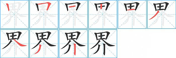 - 问:写"界"字第9笔是什么笔画?答:竖【