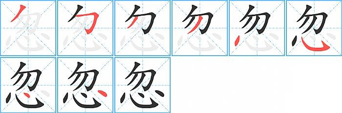 - 问:写"忽"字第1笔是什么笔画?答:撇【