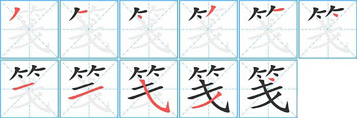 - 问:写"笺"字第10笔是什么笔画?答:撇【