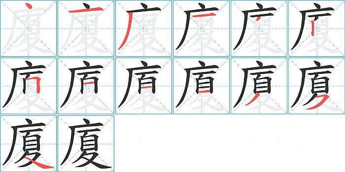 - 问:写"廈"字第13笔是什么笔画?答:捺【