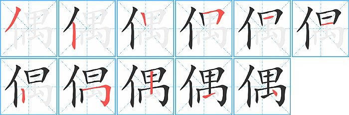 - 问:写"偶"字第9笔是什么笔画?答:竖【