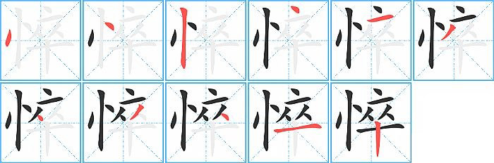 - 问:写"悴"字第10笔是什么笔画?答:横【
