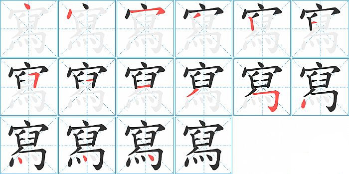 2. 描摹,叙述:寫生。寫實。寫照(①畫人物的形象;②描寫刻畫)。輕描淡寫。