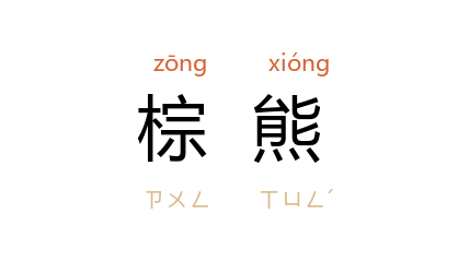 ⒈ 动物名。哺乳纲食肉目。似熊而体形大,肩部隆起,毛色一般是棕色,但随地区的不同而深浅不一,长约六、七尺。会爬树、游泳。掌和肉可食,皮可做皮褥,胆可入药。
