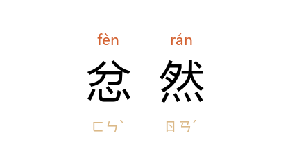 引汉 刘向 《列女传·齐桓卫姫》:“妾闻之人君有三色……忿然充满手足矜动者,攻伐之色。”明 叶盛 《水东日记·诸公才学心量》:“泰和 陈学士 当笔譔祭文,公欲有所易, 陈 忿然不平,见於言色。”王鲁彦 《狗》:“‘ 王先生 !你为什么不下去问问她呀?’ 爱罗先珂 君忿然的问我。”